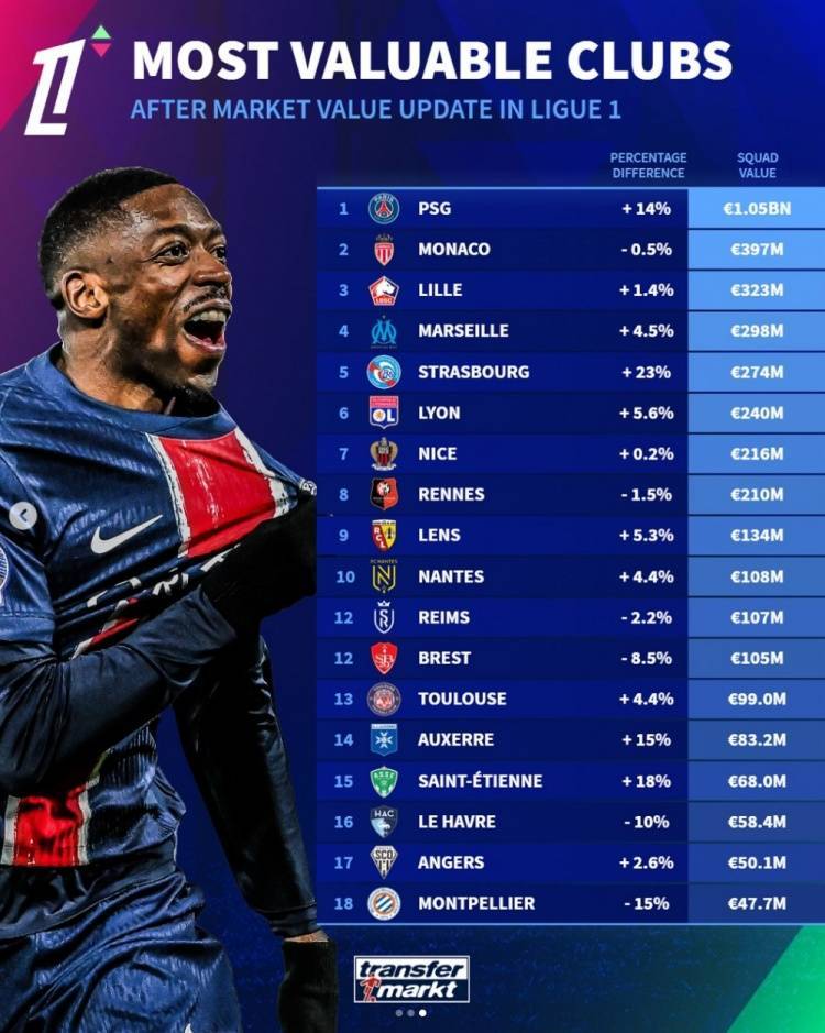 5、斯特拉斯堡:2.74亿欧(+23%)